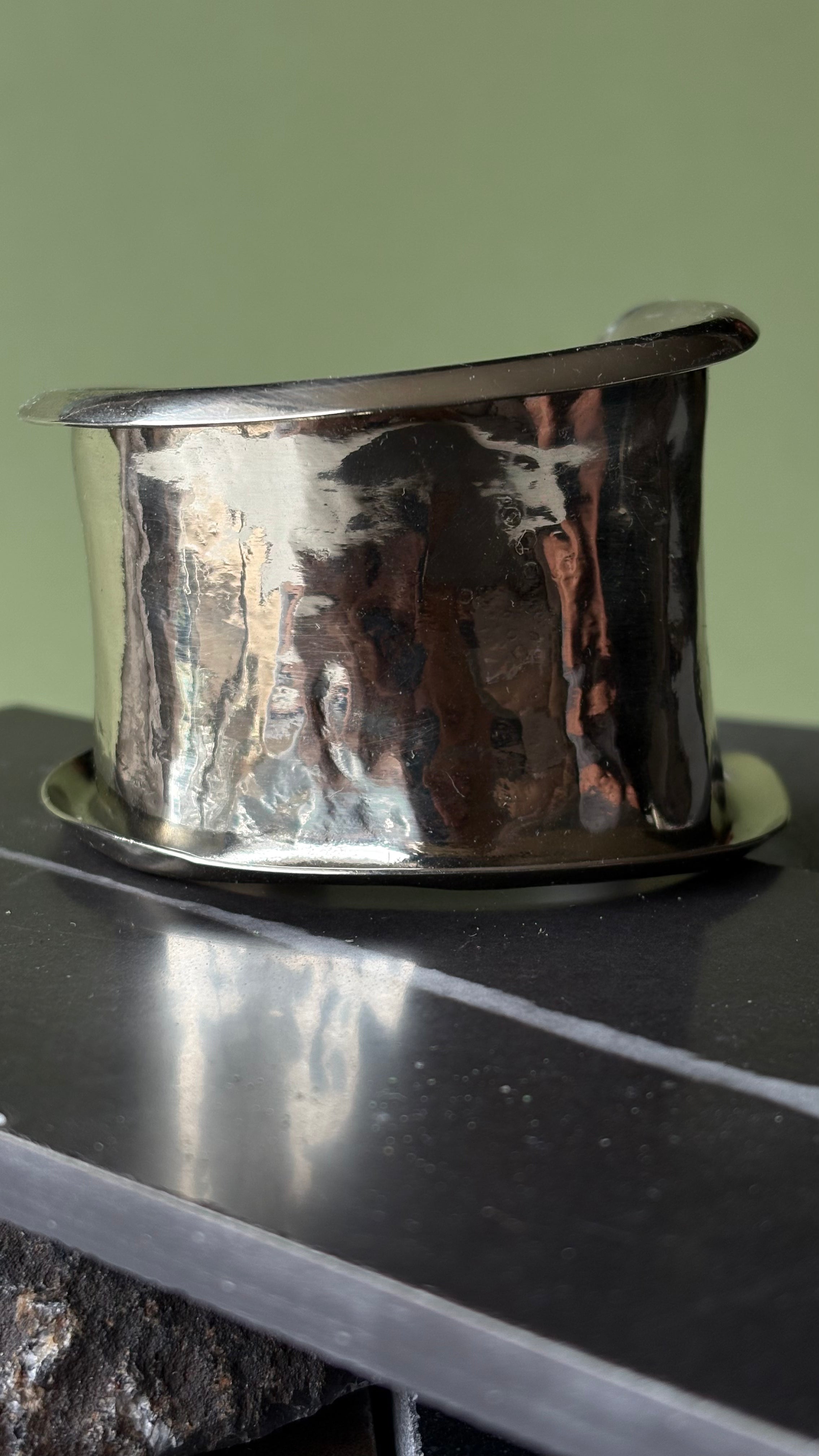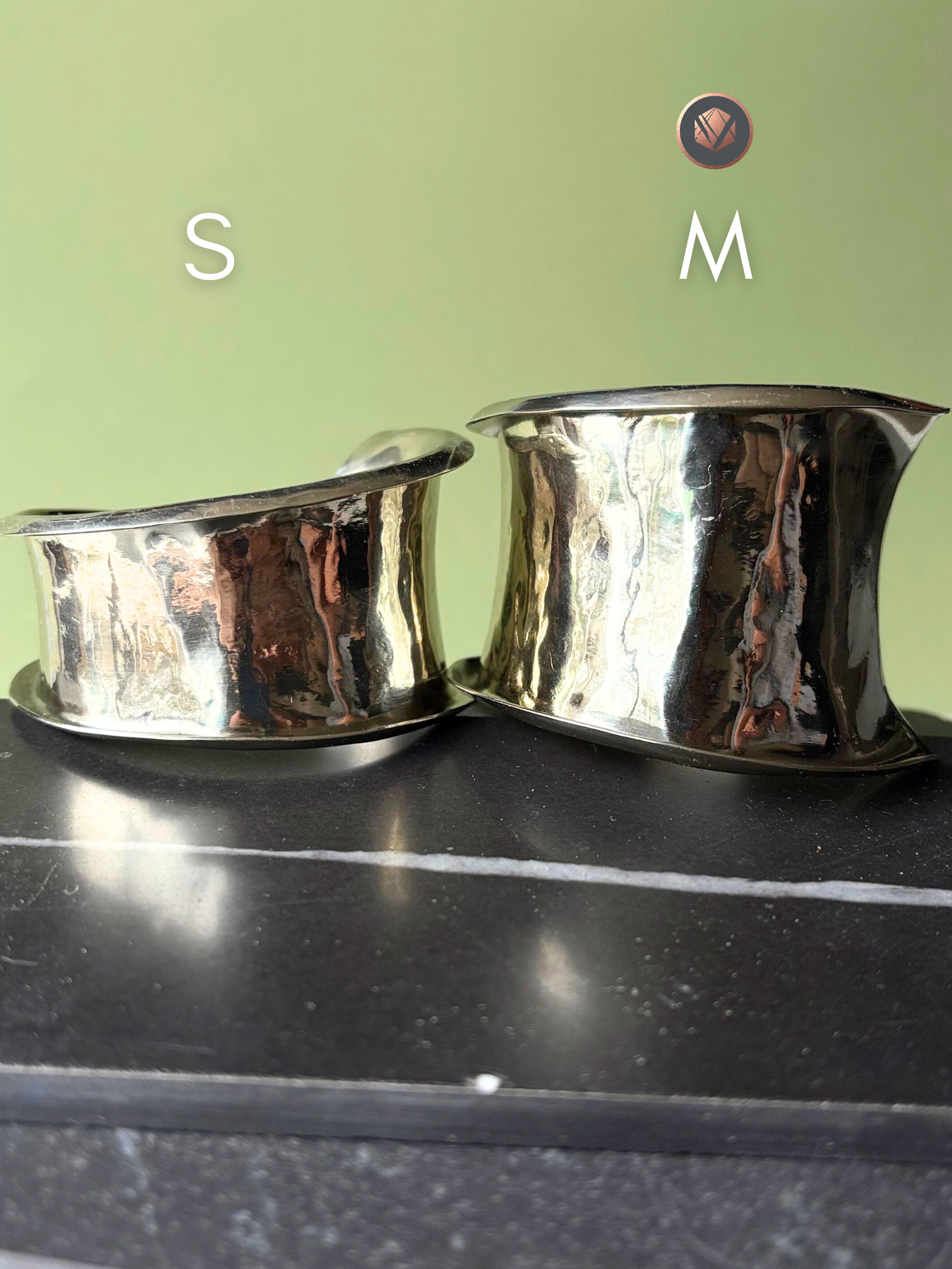 Sencillez y brillo en una sola pieza. Estos brazaletes, elaborados en alpaca pulida, destacan por su acabado liso y su luminosidad natural, logrando un estilo elegante y versátil que combina con todo. Cada pieza es trabajada a mano, lo que asegura un acabado único y de calidad artesanal.