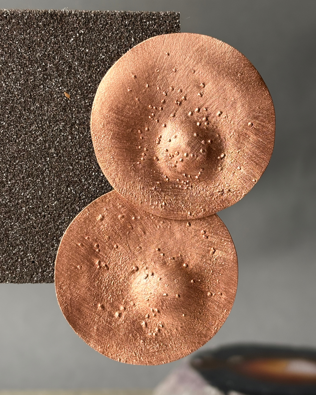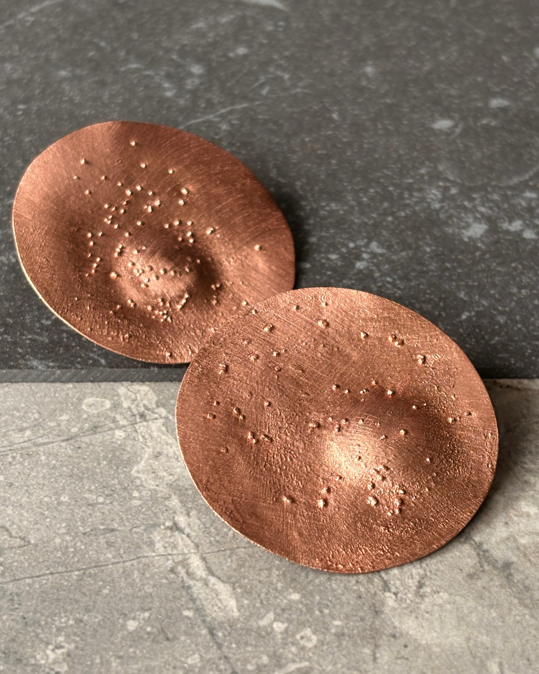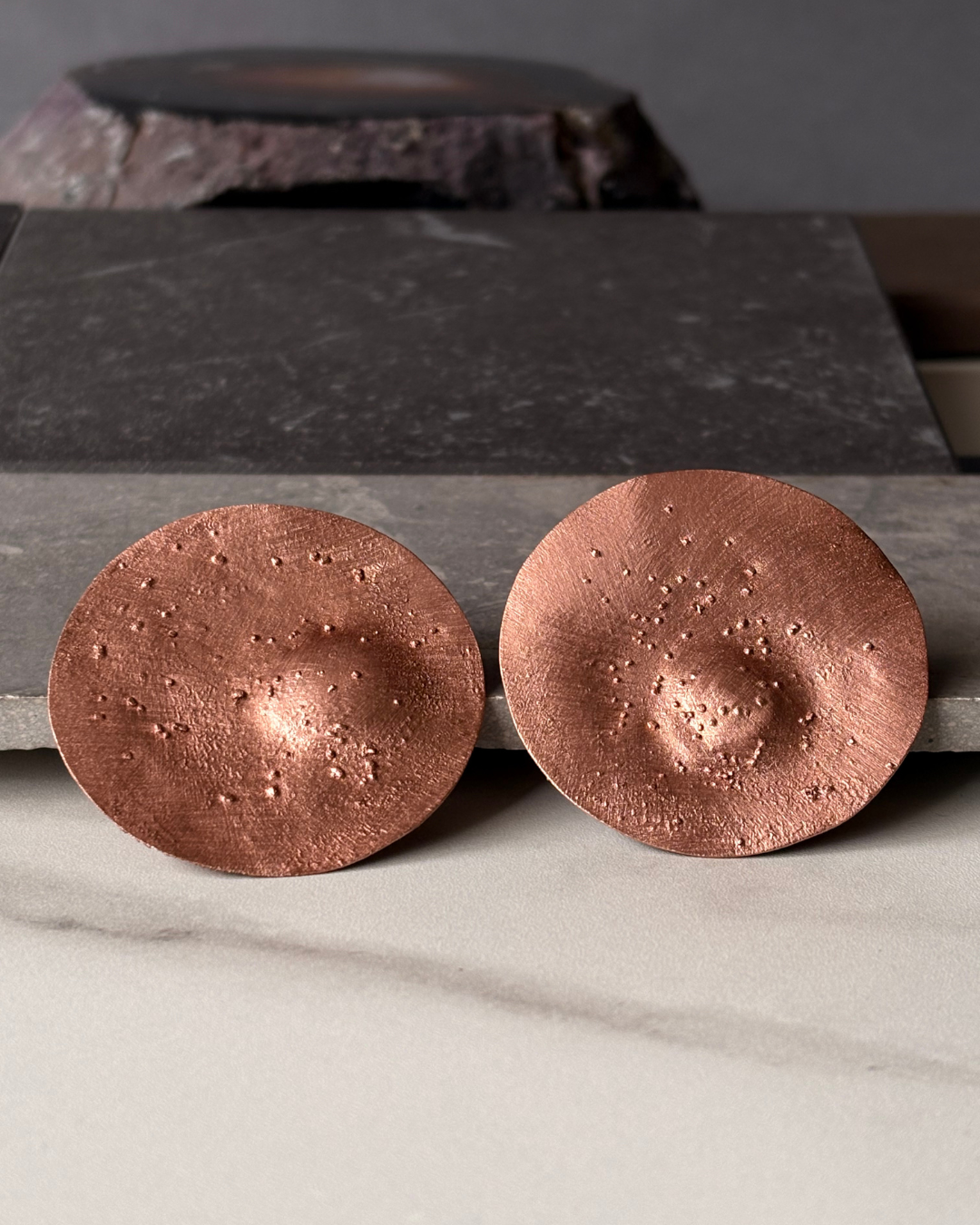 Los Aros Órbita Cobre L destacan por su forma redonda y su tamaño protagonista, pensados para quienes buscan una joya con carácter y presencia. Confeccionados en cobre, su superficie resalta la nobleza del material y la belleza de lo simple, logrando un equilibrio perfecto entre diseño contemporáneo y espíritu artesanal.