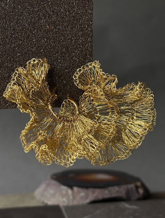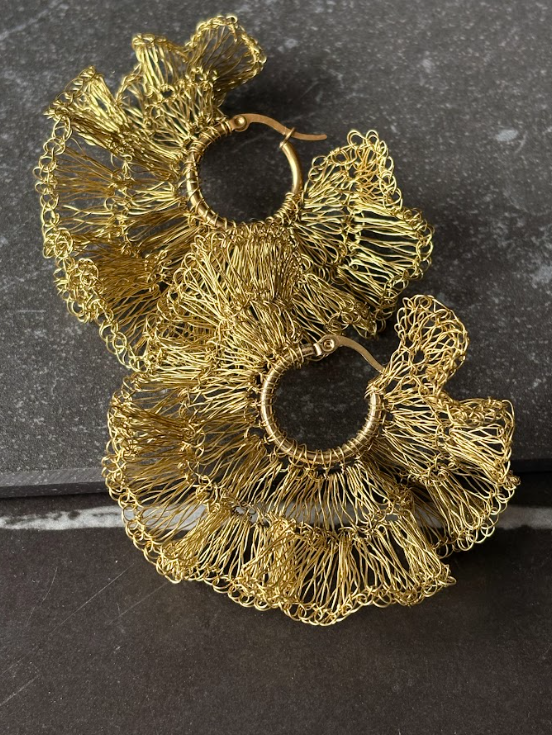 Aros artesanales elaborados a mano con delicado tejido a crochet, que aporta textura, ligereza y un estilo único a la pieza. Su diseño versátil los convierte en un accesorio ideal para complementar tanto looks cotidianos como más sofisticados. Cada par de aros es trabajado cuidadosamente a mano, reflejando la identidad de la joyería de autor de Verónica Piraino y garantizando que cada creación sea irrepetible.