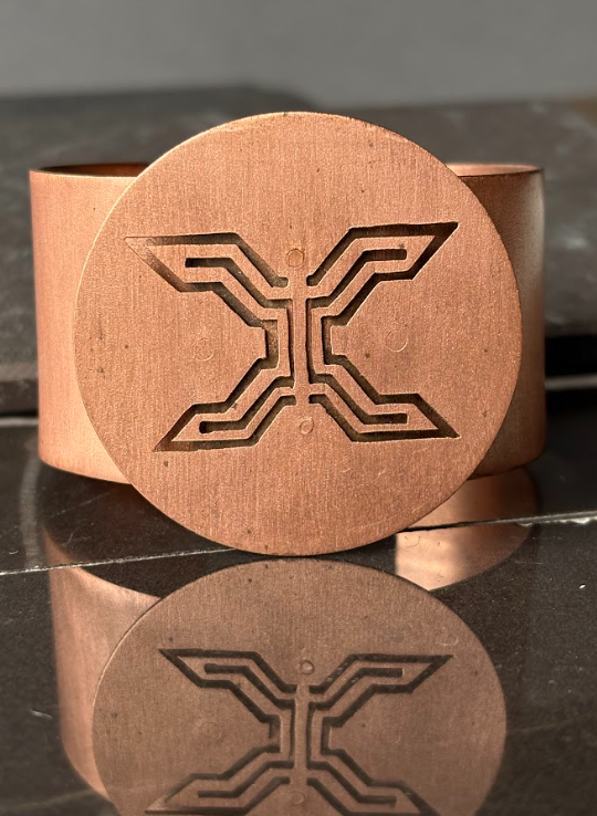 Pulsera artesanal elaborada en cobre, con diseño tipo calza que se adapta cómodamente a la muñeca. Su forma simple y expresiva resalta la calidez y la belleza natural del metal, convirtiéndola en un accesorio versátil y atemporal. Cada pulsera es trabajada a mano, reflejando la identidad de la joyería de autor de Verónica Piraino y garantizando que cada pieza sea única e irrepetible.