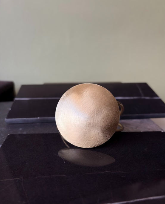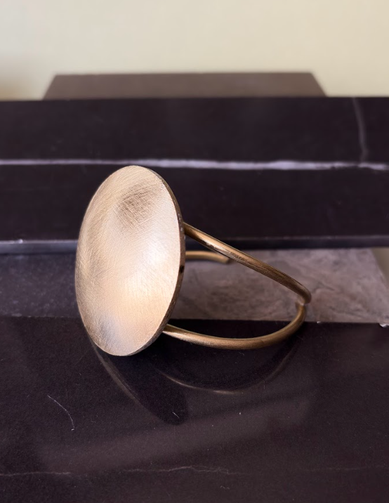 Pulsera artesanal elaborada en bronce, protagonizada por un medallón con forma de almeja que evoca lo orgánico y lo marino. Su diseño resalta la calidez del metal y la belleza de las formas naturales, convirtiéndola en una pieza con carácter y presencia. Trabajada completamente a mano, esta pulsera refleja la esencia de la joyería de autor de Verónica Piraino, donde cada creación es única y celebra el valor del trabajo artesanal.