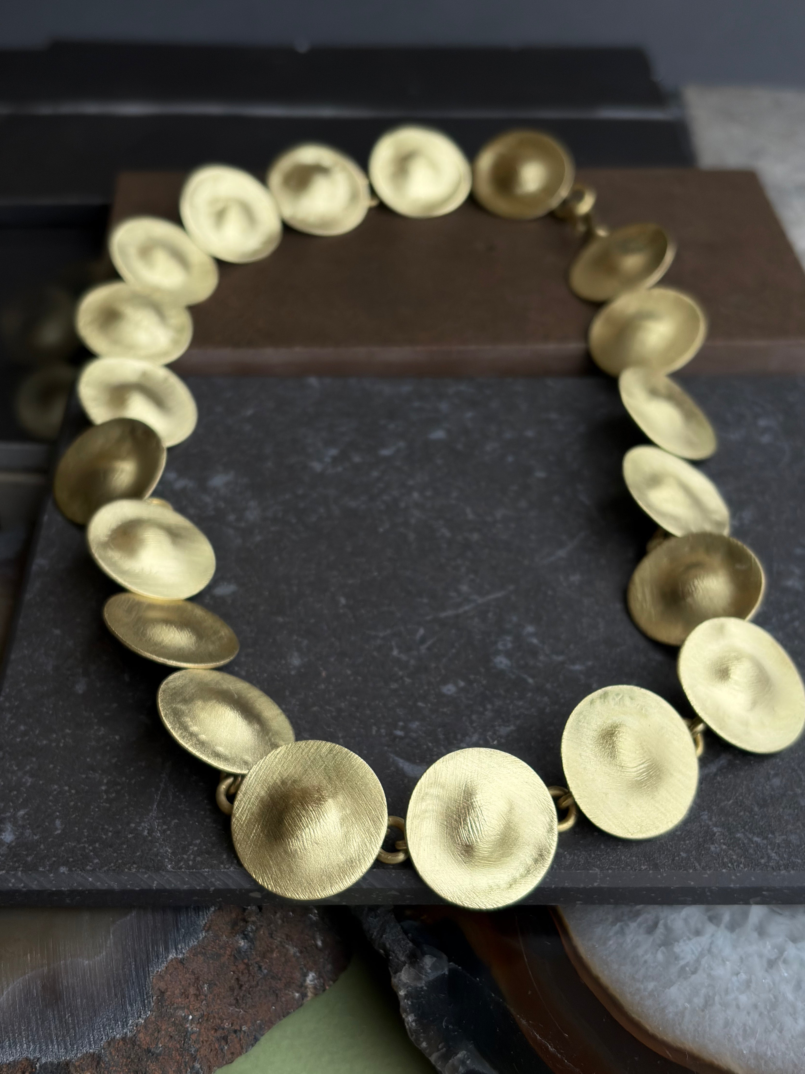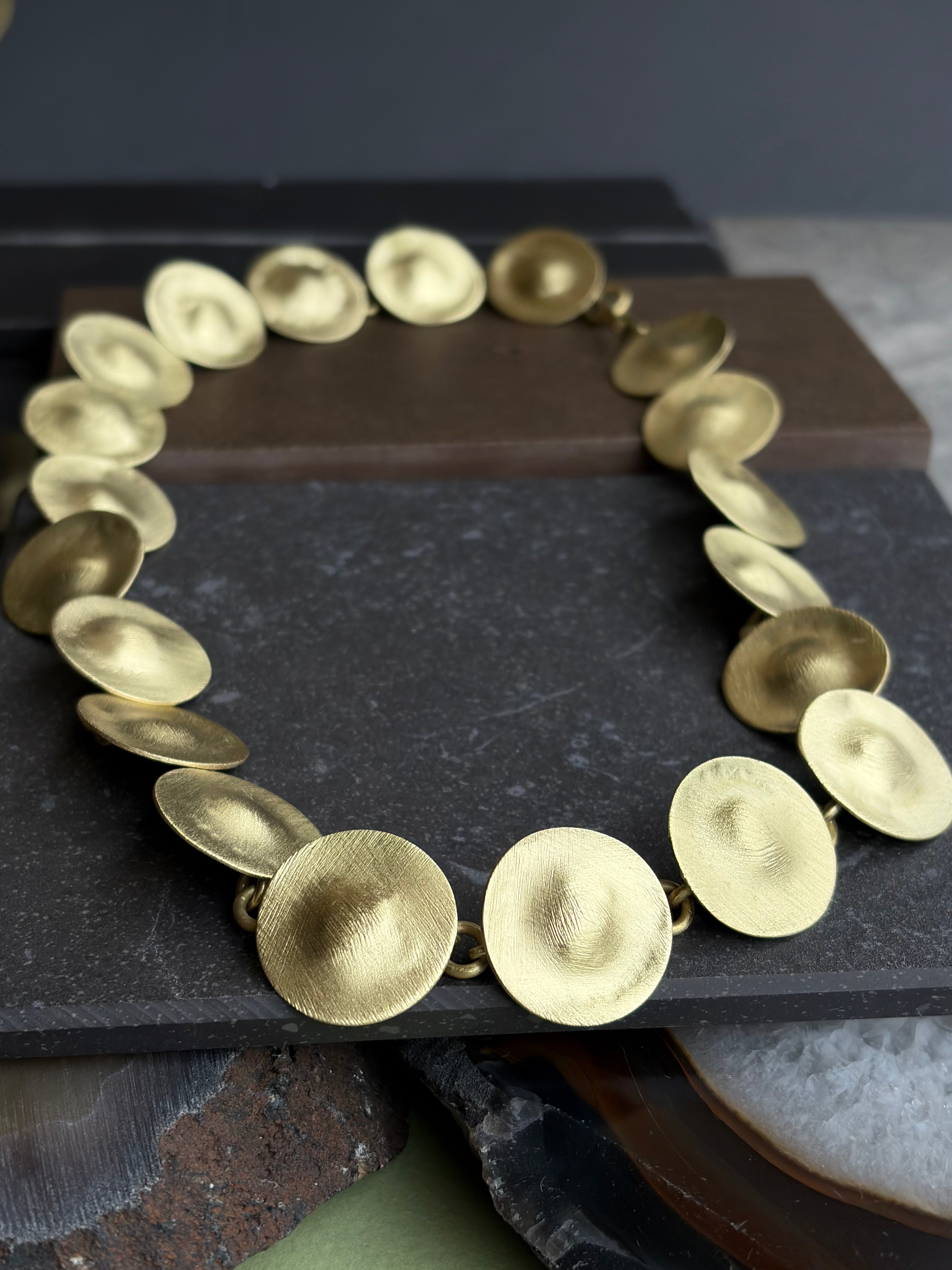 El Collar Círculo es ligero, delicado y con la calidez propia del bronce trabajado a mano, ideal para realzar la belleza en los detalles.
