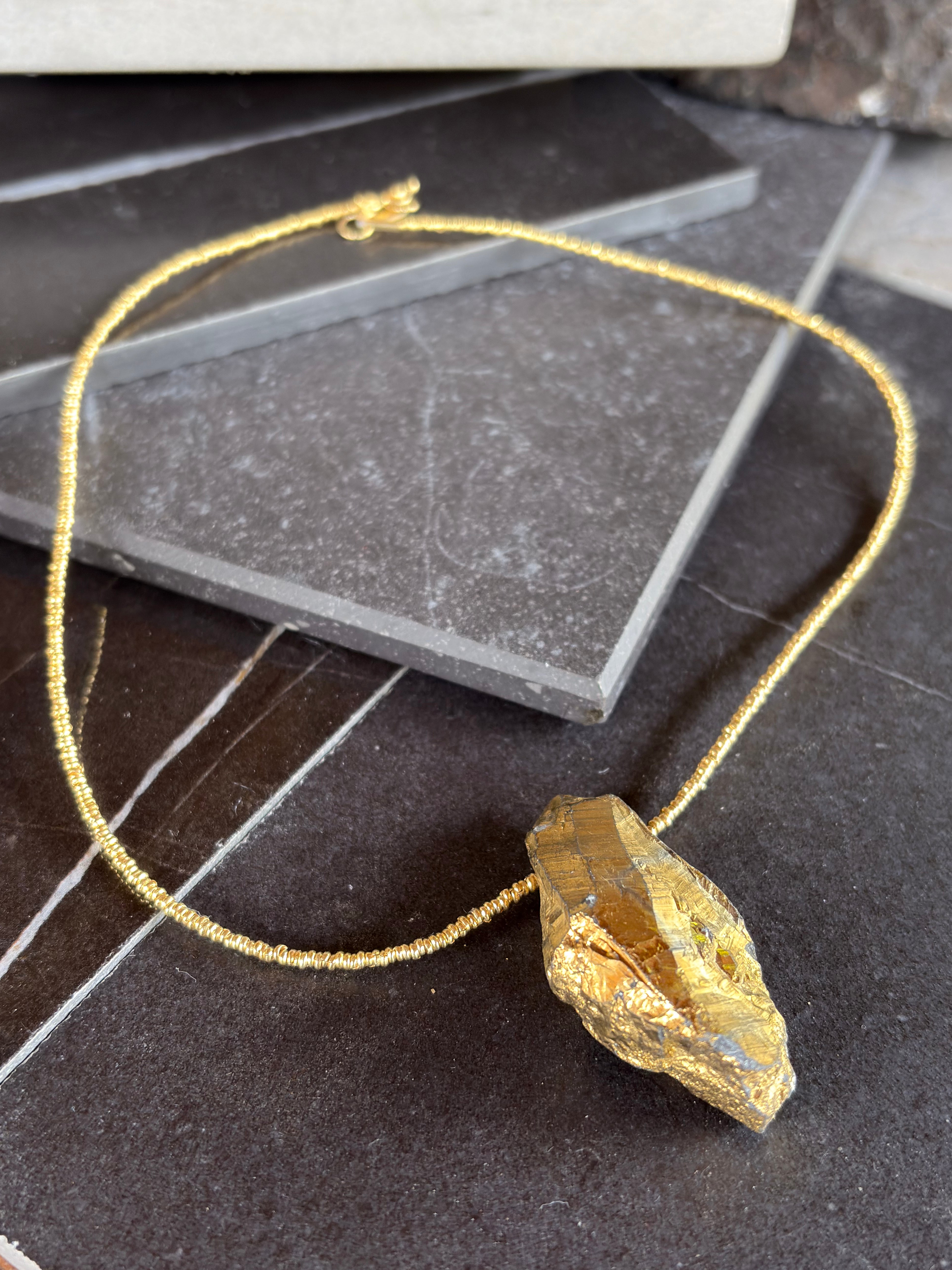 Una joya minimalista con presencia, que combina suavidad dorada y energía mineral.