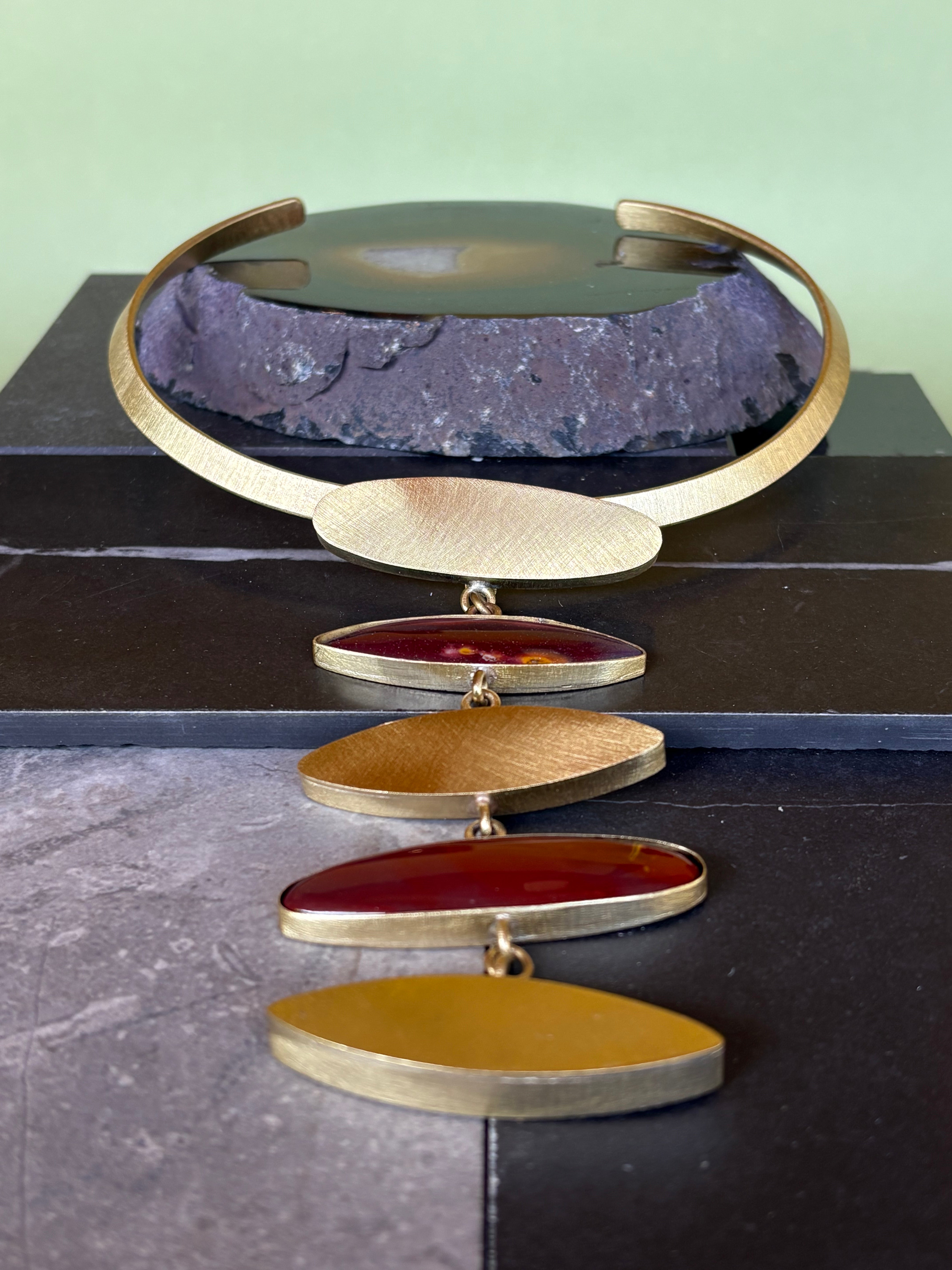 • Material: bronce y piedra jaspe arcoíris