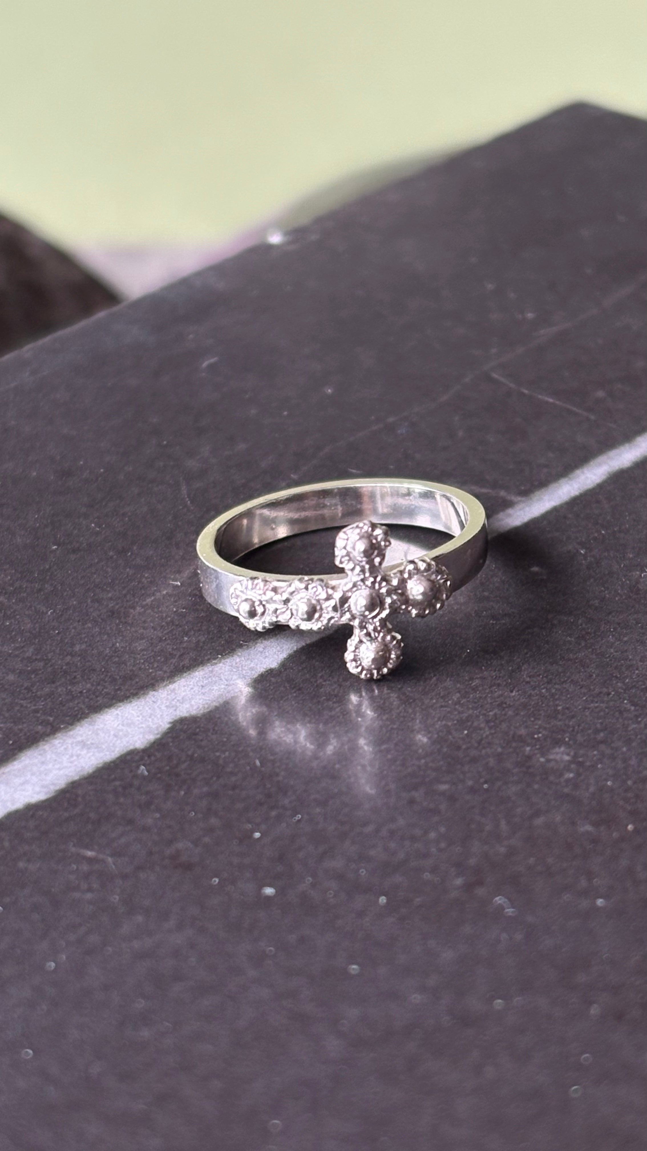 El Anillo Cruz Plata es ligero, elegante y fácil de combinar, ideal para quienes buscan una joya sencilla pero llena de sentido.
