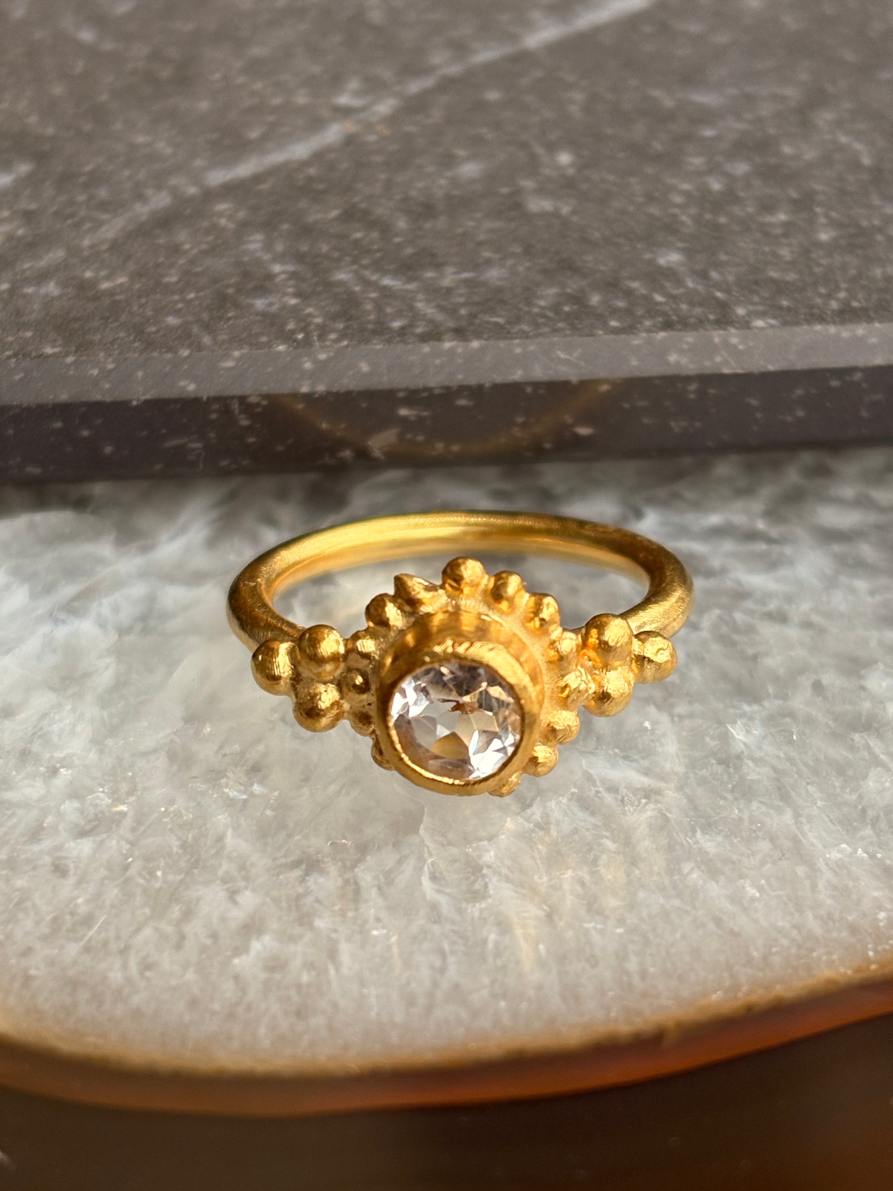 Anillo Sol de Cuarzo– Bronce bañado en oro